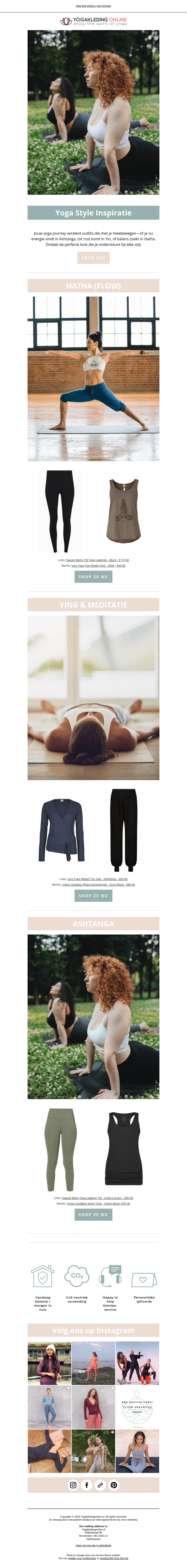 Deze nieuwsbrief biedt inspiratie voor de perfecte yogakleding, of je nu houdt van dynamische flows of rustige meditaties. Ontdek nieuwe looks voor verschillende yogastijlen zoals Hatha en Ashtanga. Shop de comfortabele en stijlvolle kledingstukken die bij jouw yogapraktijk passen. Laat de kleuren en designs je inspireren tot nieuwe hoogtes tijdens je sessies. Blijf op de hoogte van het laatste nieuws en trends in yogakleding.