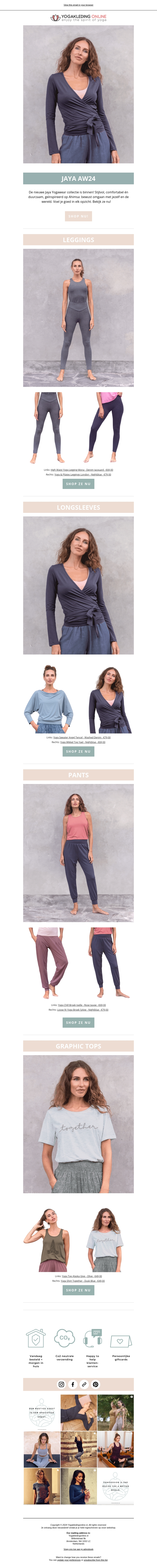 De nieuwste Jaya AW24 collectie is binnen met duurzame en stijlvolle opties. Geniet van veelzijdige leggings, longsleeves en grafische tops, ideaal voor iedere gelegenheid. Verantwoord en modieus, deze items zijn perfect voor de bewuste shopper. Bekijk de collectie en ontdek jouw favoriete stukken.