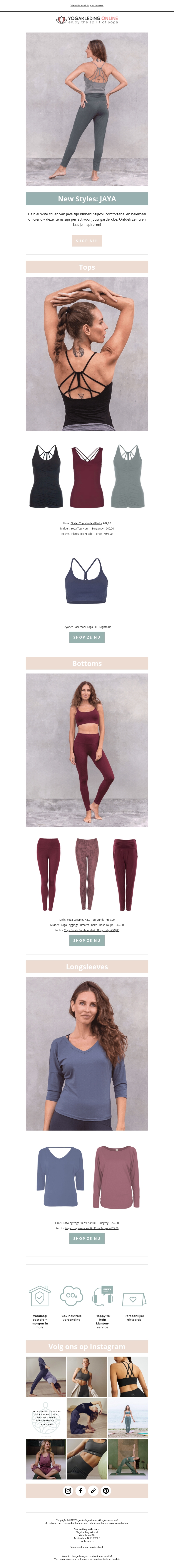 Verfris je yoga-garderobe met de nieuwste stijlen van Jaya. Van trendy tops tot comfortabele leggings, perfecte voor elke workout. Ontdek de collectie en bestel vandaag nog.