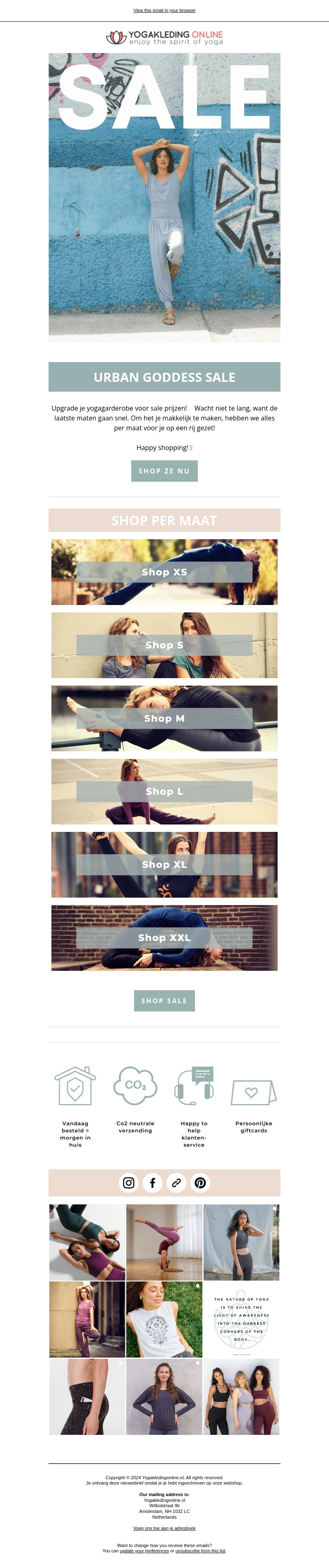 Upgrade je yogagarderobe met onze Urban Goddess Sale! Vergeet niet te lang te wachten, want de laatste maten gaan snel. Maak gebruik van deze fantastische aanbiedingen en shop per maat. Geniet van CO2-neutrale verzending en persoonlijke giftcards. Happy shopping!