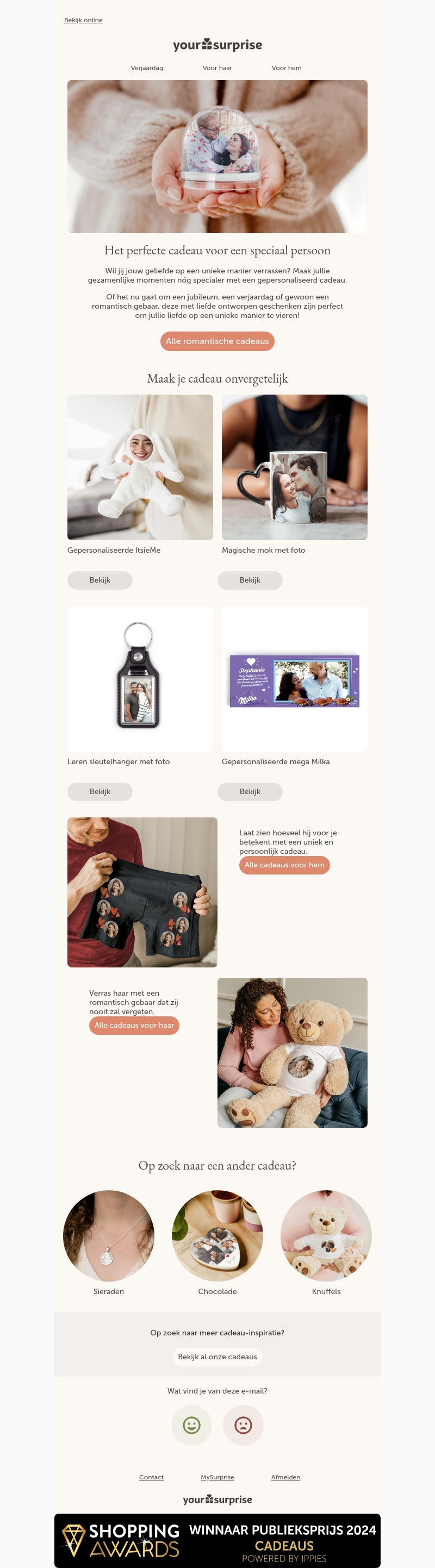 Verras je geliefde met een uniek geschenk dat jullie gezamenlijke momenten vereeuwigt. Of het nu voor een jubileum, verjaardag of gewoon zomaar is, gepersonaliseerde cadeaus maken elk moment speciaal. Van een magische mok tot een knuffel met foto, er is iets voor iedereen.