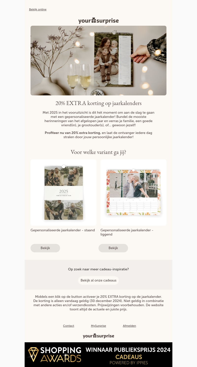 Profiteer nu van 20% EXTRA korting op een gepersonaliseerde jaarkalender! ๐