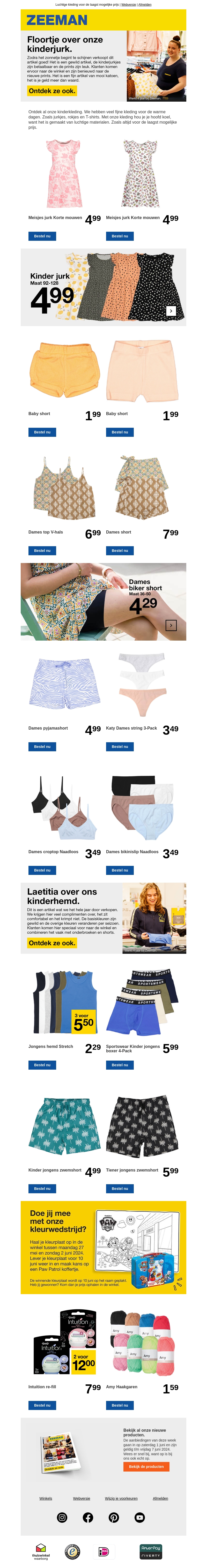 Zorg dat je kinderen klaar zijn voor de zomer met onze leuke en voordelige kinderjurken en andere zomerkleding. Ontdek de nieuwste collecties met korte mouwen en vrolijke prints bij Zeeman. Koop nu en profiteer van scherpe prijzen!