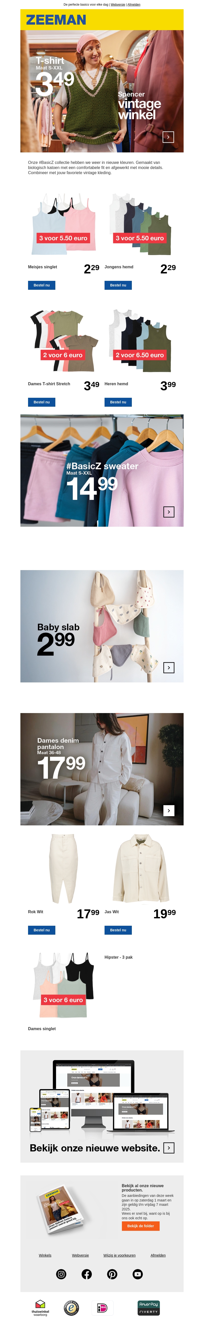 De nieuwe #BasicZ collectie van Zeeman is gearriveerd! Ontdek stijlvolle en betaalbare mode-items zoals T-shirts, sweaters en denim voor dames en heren. Geniet van speciale aanbiedingen zoals 3 voor 5,50 euro of 2 voor 6 euro opties. Ideaal om je garderobe budgetvriendelijk te vernieuwen. Bekijk ook hun nieuwe website voor meer inspiratie en online gemak.