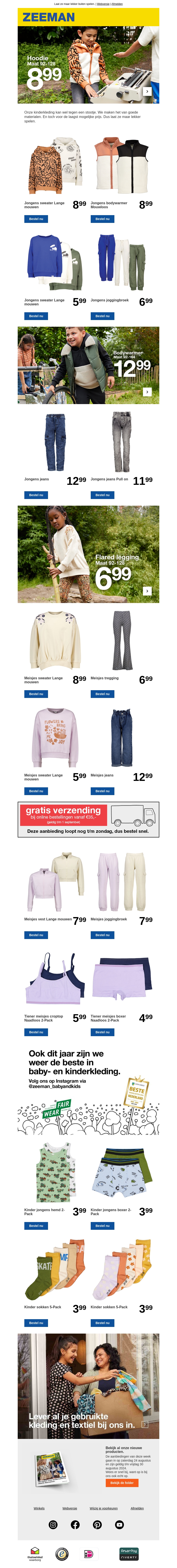 Onze nieuwe kindercollectie is binnen! Ontdek de nieuwste mode-items voor kinderen met scherpe prijzen. Van kleurrijke hoodies tot comfortabele joggingbroeken, we hebben alles wat je nodig hebt voor het nieuwe seizoen. Mis de gratis verzending niet bij bestellingen boven €10.