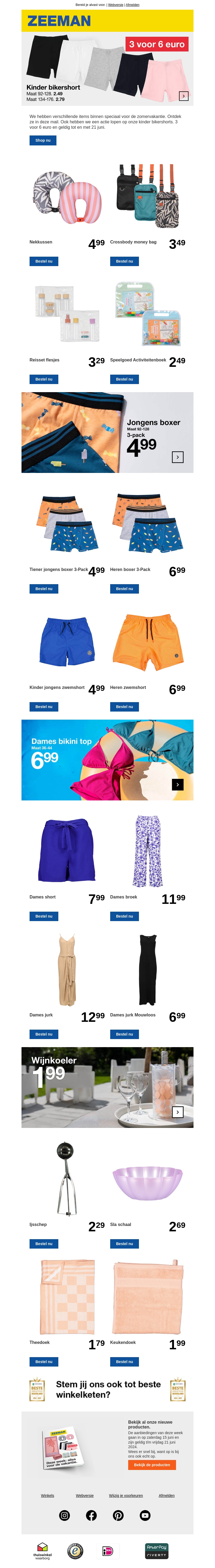 Bereid je voor op de zomervakantie met Zeeman! Ontdek onze speciale aanbiedingen, van comfortabele bikershorts tot handige reisaccessoires en zomerkleding. Mis het niet!