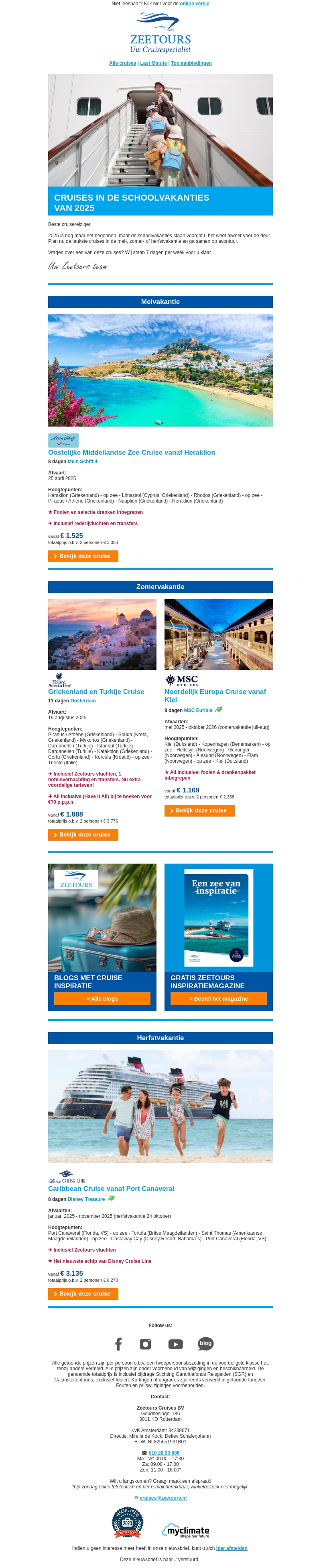 Cruises in de schoolvakanties ✓