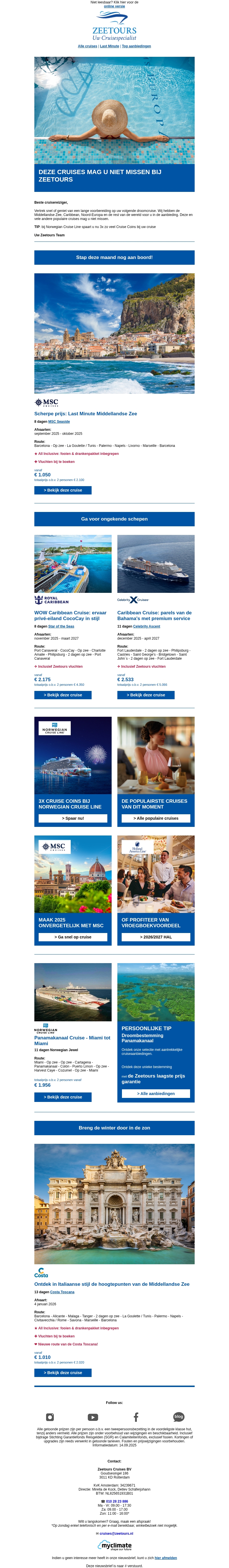 Deze cruises mag u niet missen bij Zeetours