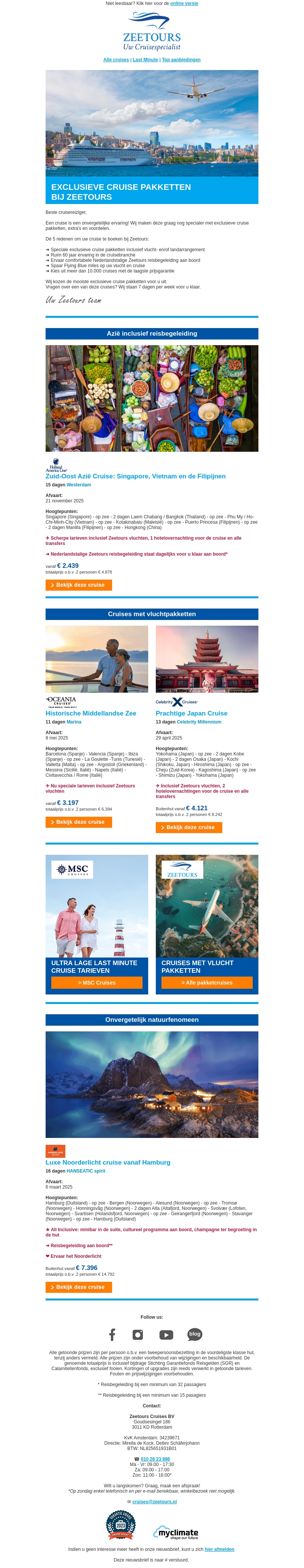 Exclusieve cruise pakketten bij Zeetours Cruises