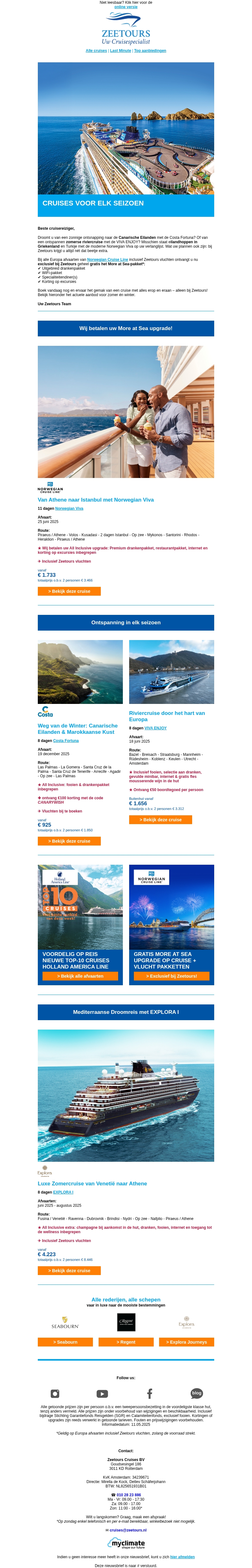Gratis More at Sea bij Norwegian Cruise Line & andere mooie deals