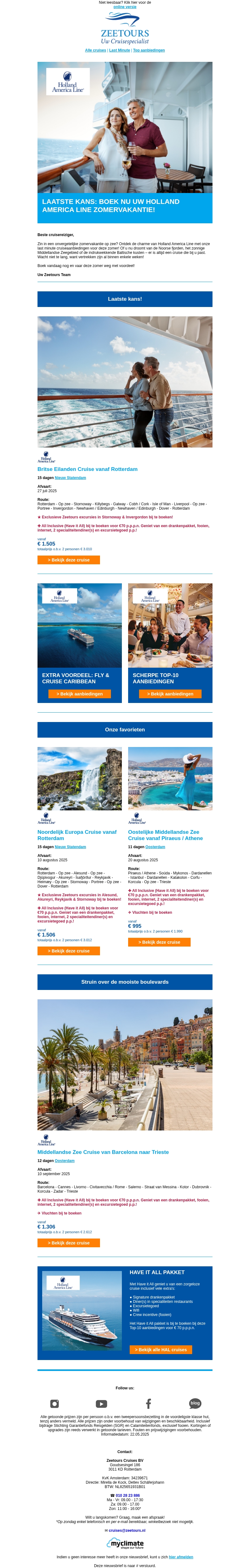 Deze Holland America Line cruises mag u niet missen!