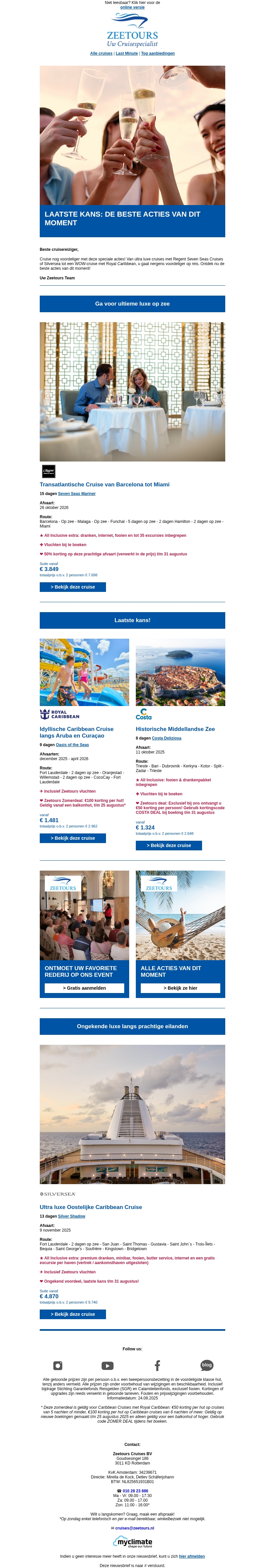 Laatste kans: de beste acties voor uw volgende cruisevakantie!