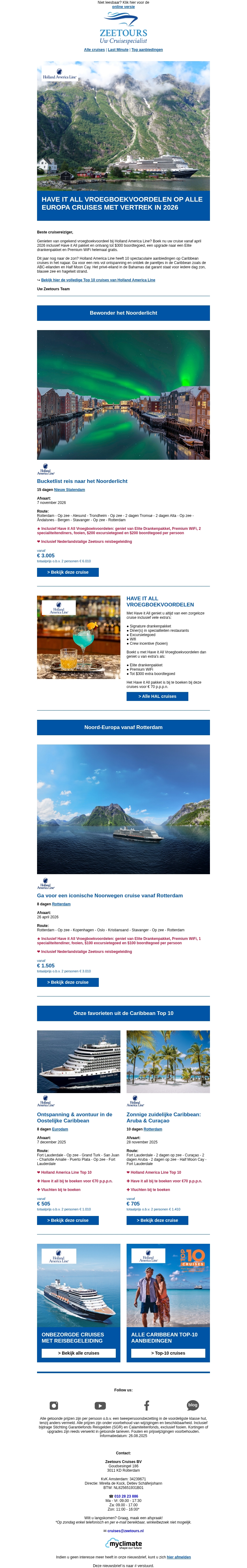 Deze Holland America Line cruises mag u niet missen!