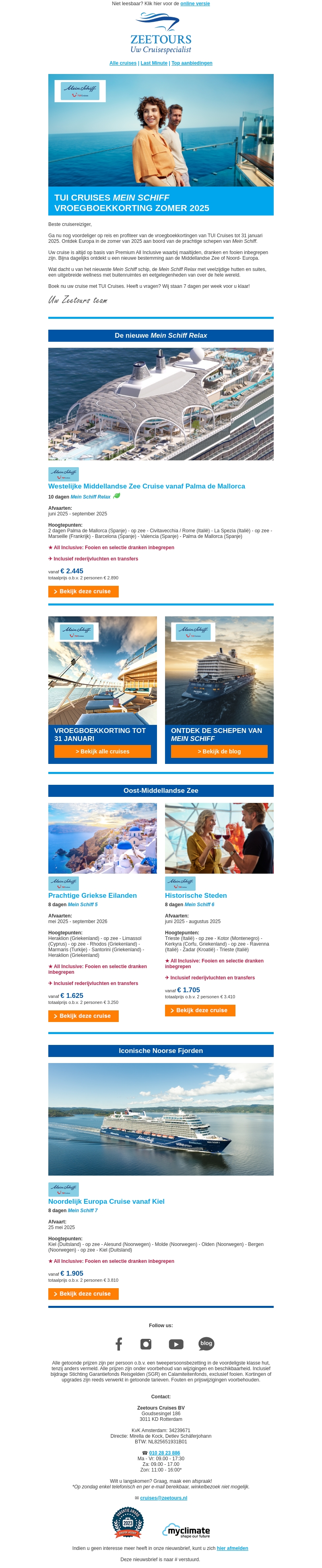 Ontvang vroegboekkorting op TUI Cruises en ontdek de nieuwe Mein Schiff schepen. Boek nu je zomer 2025 cruise en geniet van adembenemende bestemmingen. Ervaar luxe en comfort met all-inclusive arrangementen. Mis deze geweldige aanbieding niet!