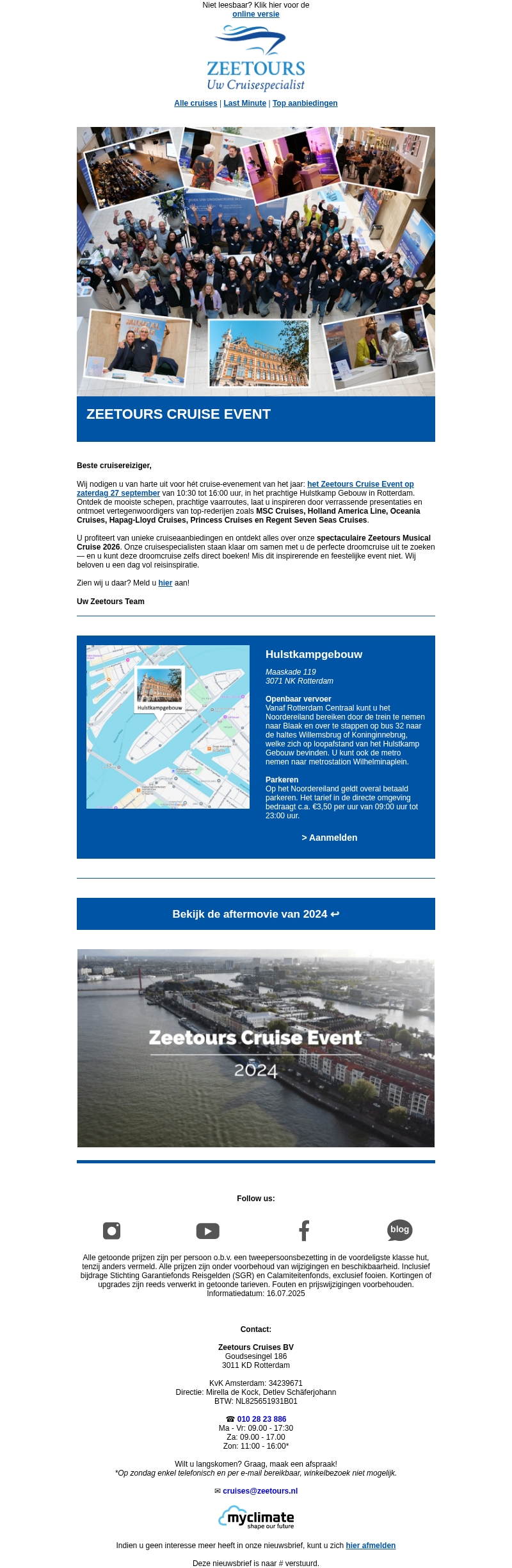 Uitnodiging Zeetours Cruise Event Rotterdam | 27 september