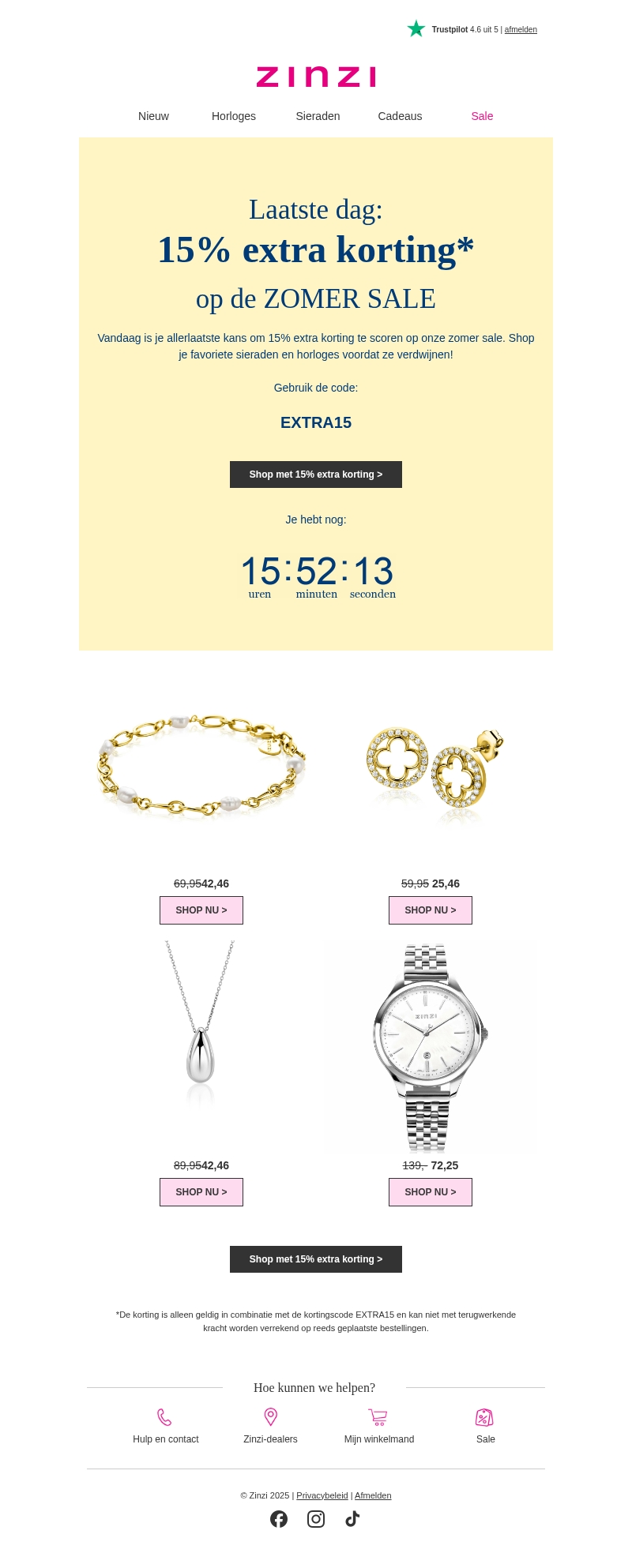 🚨 Alleen vandaag nog: 15% extra korting op de zomersale!