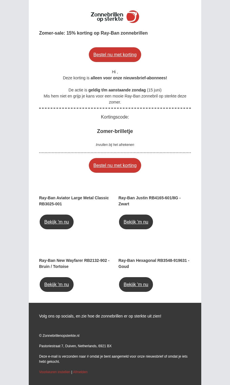 , krijg nu 15% korting op Ray-Ban zonnebrillen!