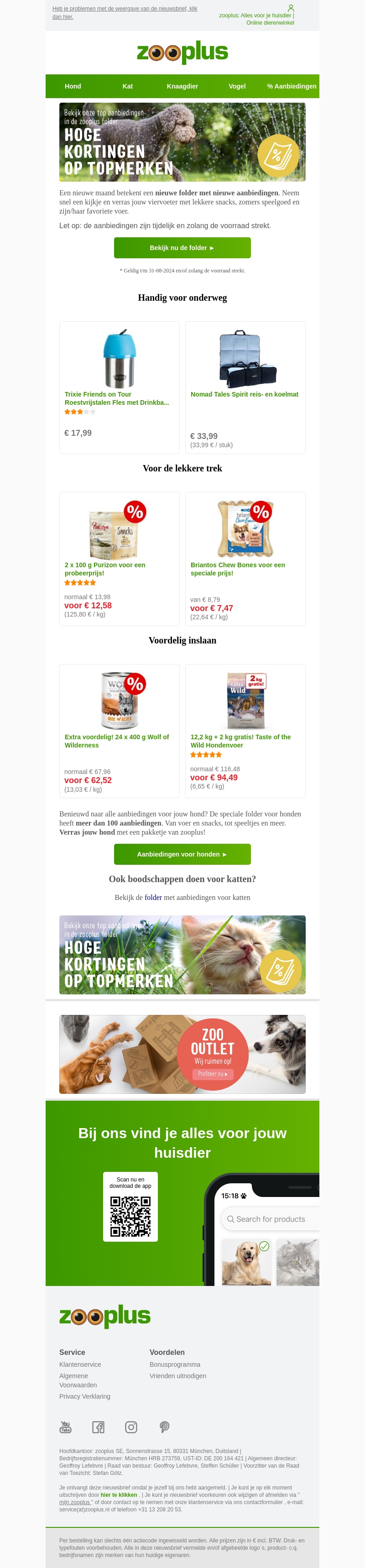 De nieuwe folder van Zooplus staat online met fantastische kortingen op topmerken voor honden, katten, knaagdieren en vogels. Haal nu uw favoriete huisdier producten tegen aantrekkelijke prijzen. De aanbiedingen zijn tijdelijk en zolang de voorraad strekt.
