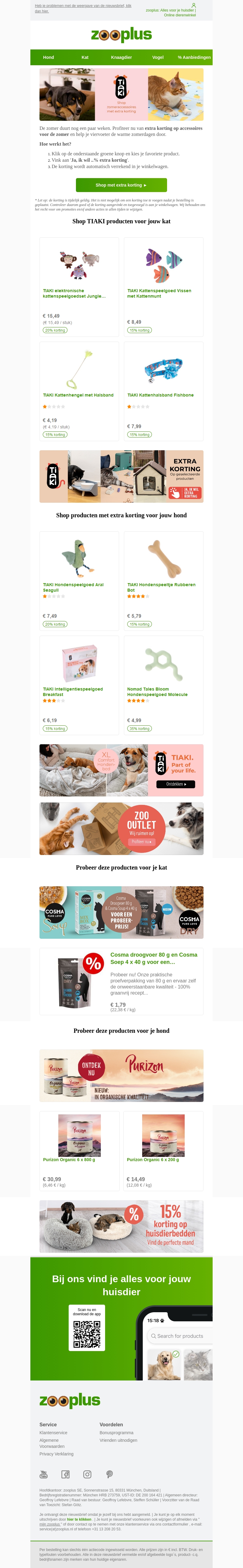 De zomer staat voor de deur en dat betekent dat het tijd is om jouw huisdier te verwennen met nieuwe accessoires! Bij Zooplus profiteer je nu van extra korting op verschillende producten voor katten en honden. Shop nu en maak jouw huisdier klaar voor een heerlijke zomer!