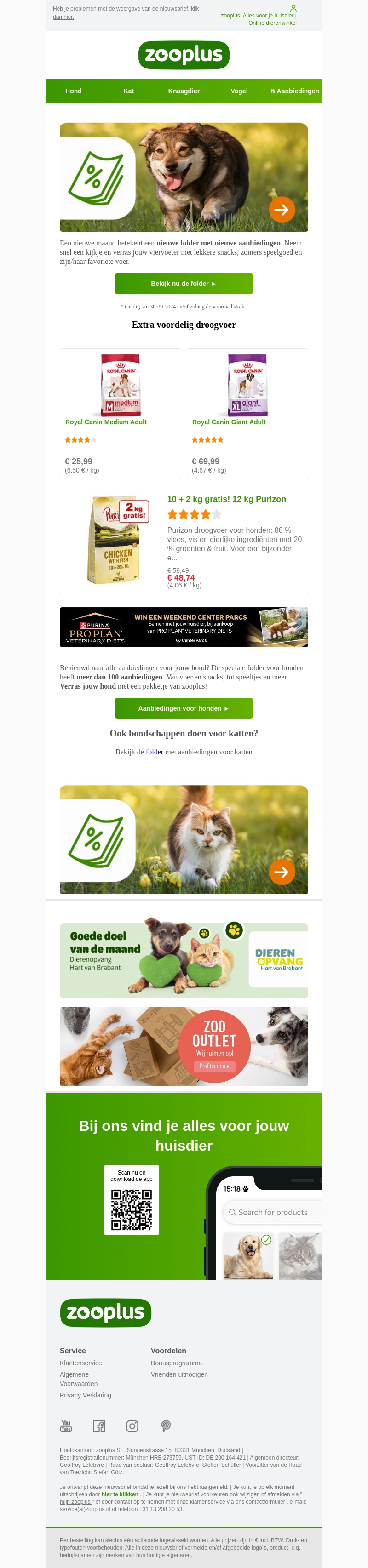 De nieuwe folder van Zooplus staat online! Ontdek de nieuwste aanbiedingen voor jouw huisdier, van honden- en kattenvoer tot speelgoed en zomerse snacks. Mis deze kans niet om te profiteren van geweldige deals en verras je huisdier vandaag nog.