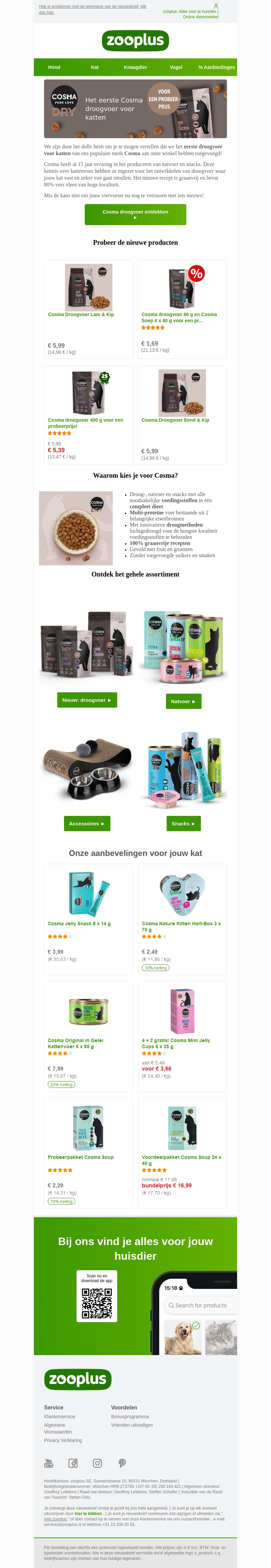 Ontdek nu het nieuwste Cosma droogvoer voor katten bij Zooplus. Met puur vlees en natuurlijke ingrediënten, biedt Cosma hoogwaardig voer van de beste kwaliteit. Bekijk de verschillende varianten en kies de beste optie voor jouw kat. Inclusief speciale aanbiedingen.