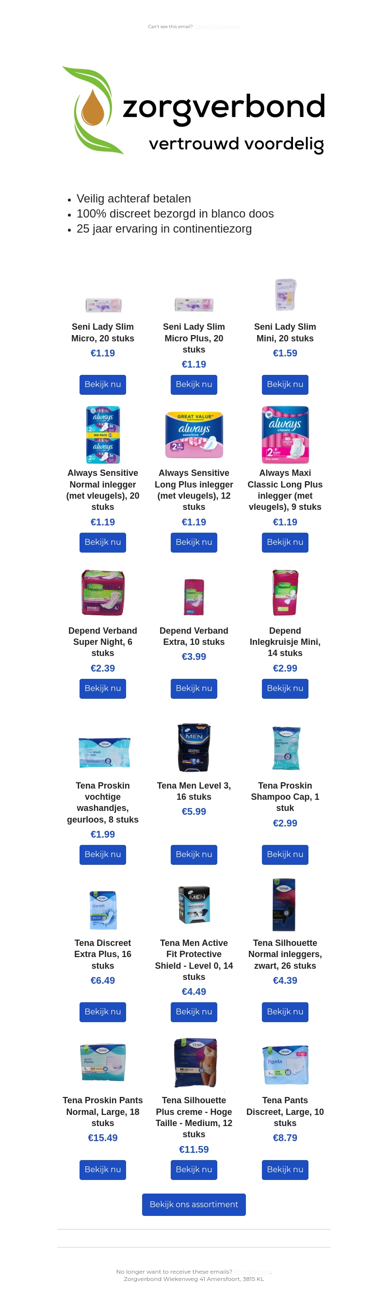 Tena, Abena, Always, Seni en meer. Voordelig en vertrouwd bij Zorgverbond.nl!