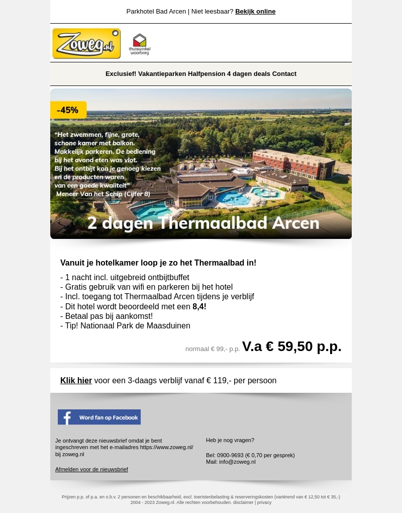 2 dagen Thermaalbad Arcen v.a 59,50 p.p.