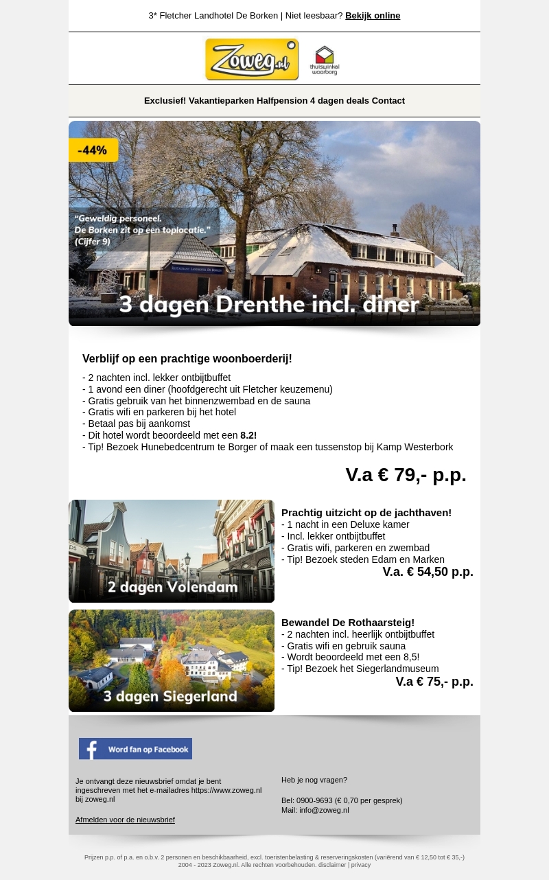 Beleef een unieke ervaring in Drenthe met een arrangement inclusief 2 nachten in een prachtige woonboerderij. Geniet van een uitgebreid ontbijtbuffet en een diner naar keuze bij Fletcher. Ontspan met gratis toegang tot het zwembad en de sauna en geniet van gratis wifi. Bezoek lokale bezienswaardigheden zoals het Hunebedcentrum en Kamp Westerbork. Een perfect uitje vanaf slechts €79 per persoon.
