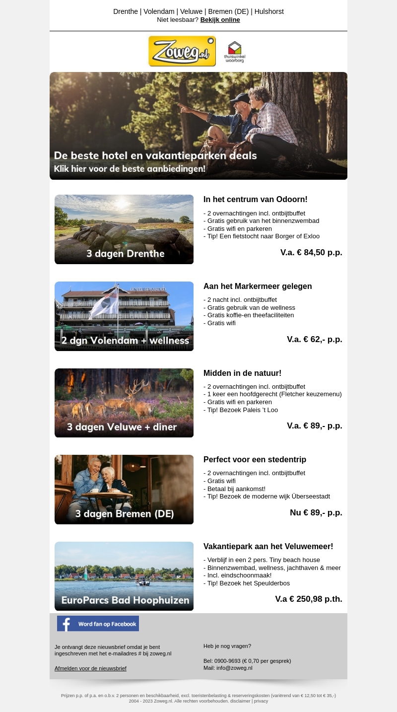 3 dagen Drenthe v.a. 84,50 en meer