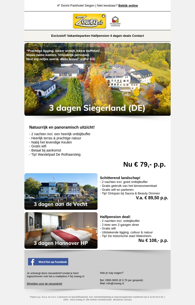 3 dagen Siegerland nu 79,- 4* hotel