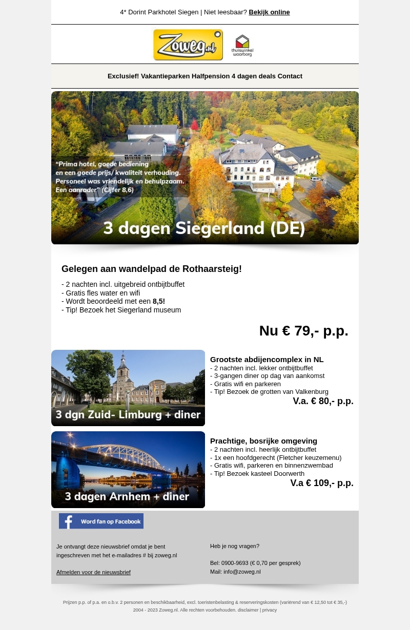 3 dagen Siegerland nu 79,-