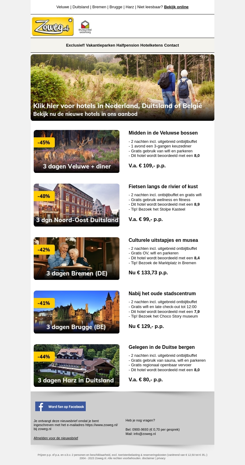 Ontsnap naar de prachtige Veluwe met een 3-daagse reis inclusief een heerlijk diner vanaf €109,- p.p. Ontdek ook andere geweldige deals naar Noord-Oost Duitsland, Bremen, Brugge en Harz met korting tot wel 48%.