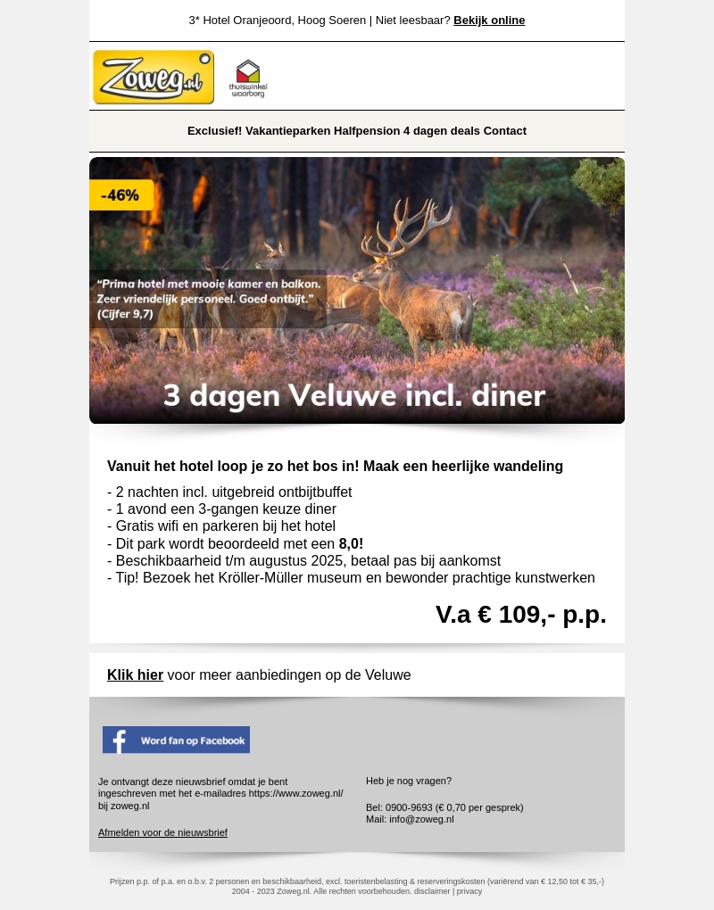 3 dagen Veluwe + diner v.a. 109,-