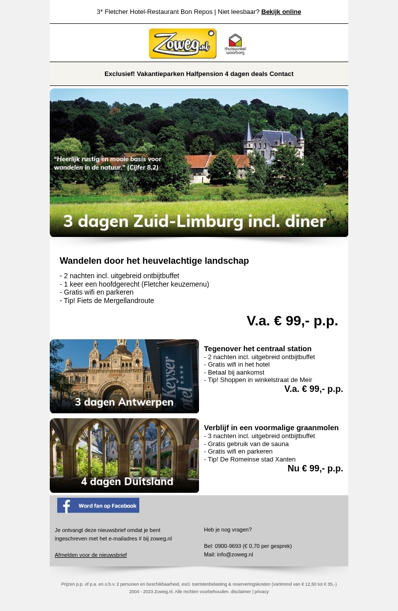 3 dagen Zuid-Limburg + diner v.a. 99,-