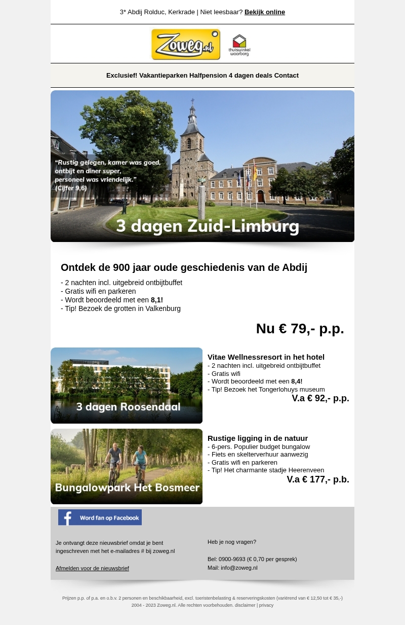 3 dagen Zuid Limburg nu 79,-
