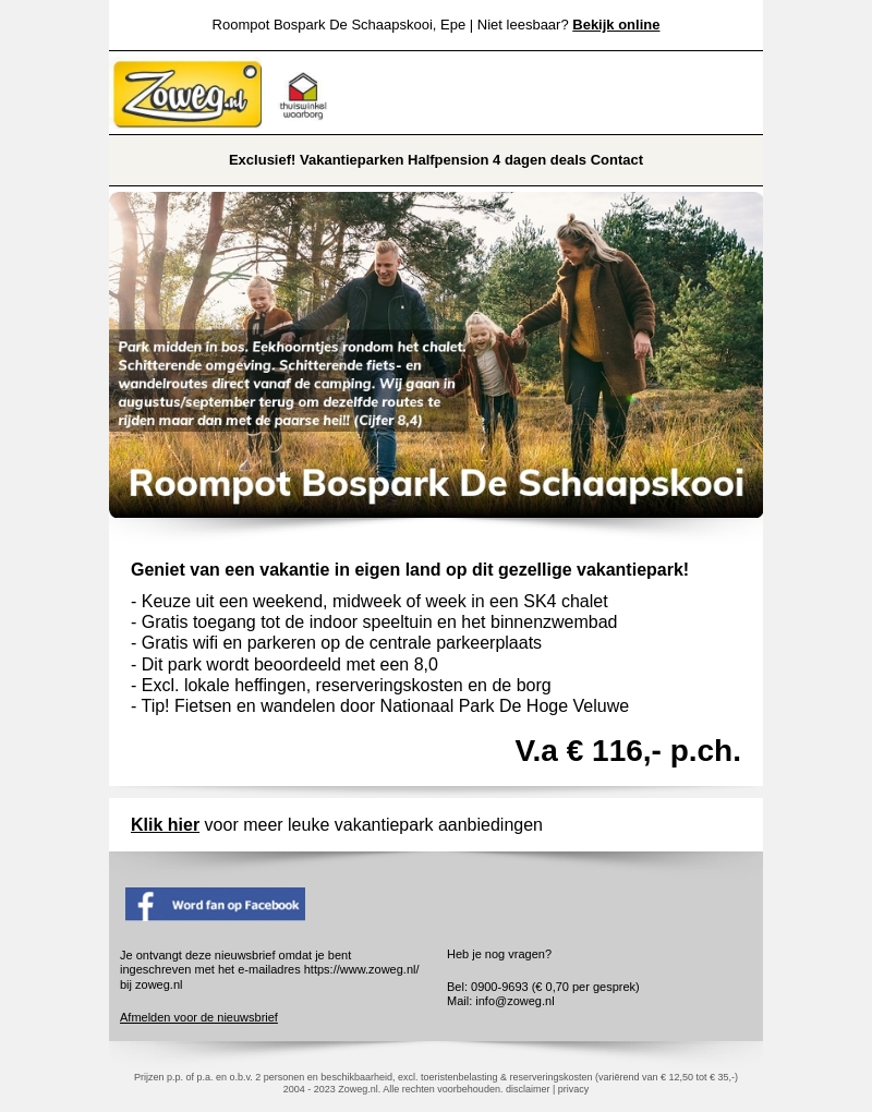 5 dagen Veluwe chalet v.a. 116,-