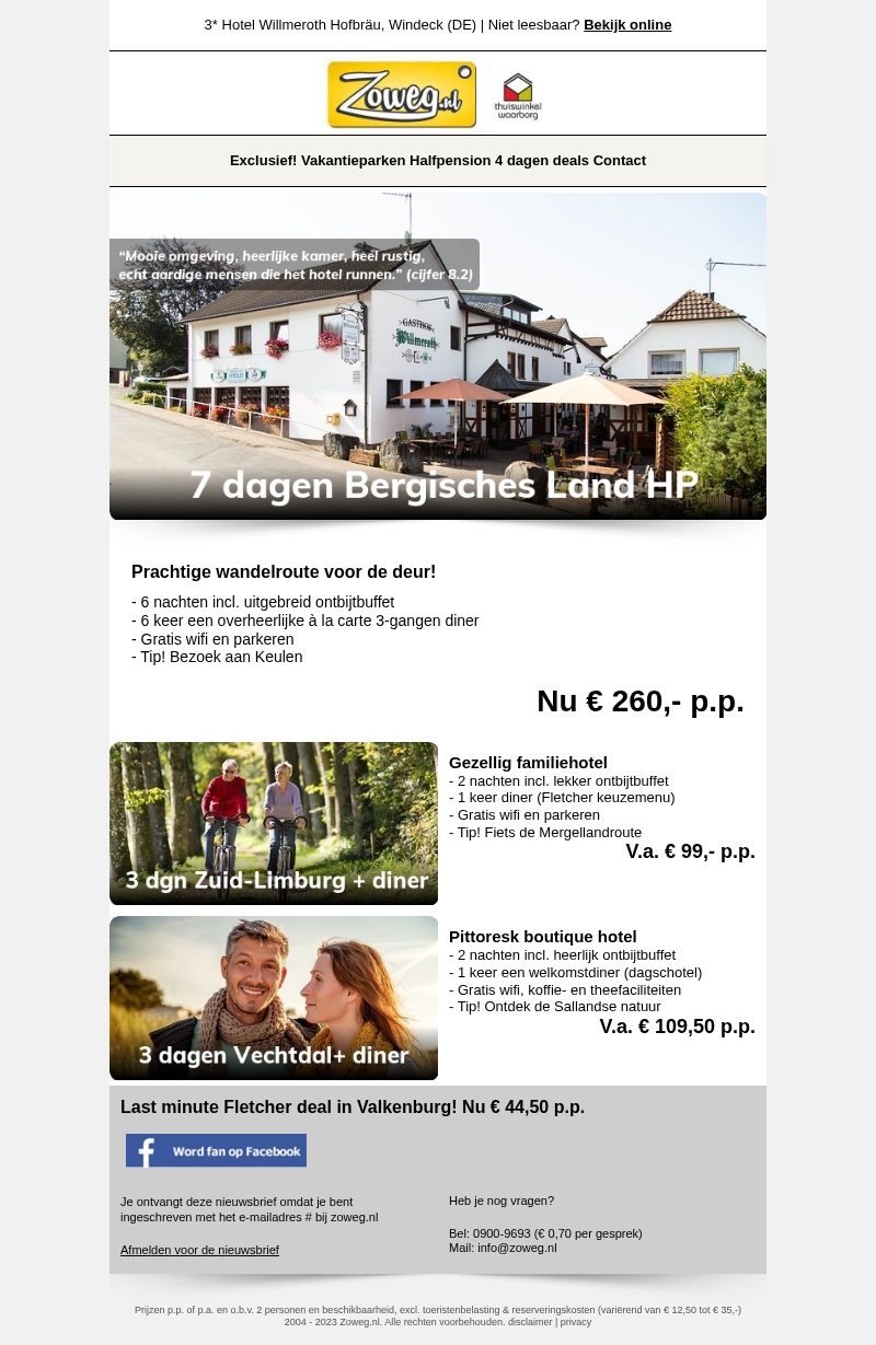 7 dagen Bergisches Land HP nu 260,-