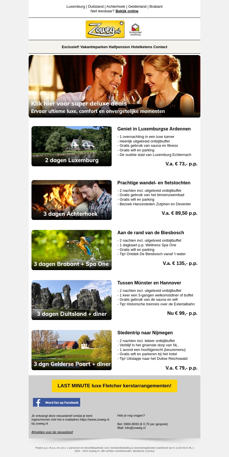 Verken de prachtige bestemmingen met onze super deluxe deals. Geniet van luxe overnachtingen en uitgebreide buffetten in Luxemburg, Achterhoek, en meer. Ontspan in een spa of ontdek historische steden. Boek nu en ervaar onvergelijkbare luxe en comfort.